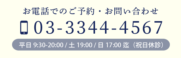 平日9:30-20:00 / 土19:00迄 / 日17:00迄 / 祝日休診