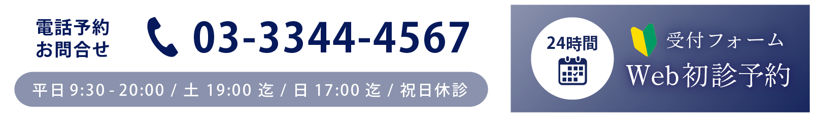 平日9:30-20:00 / 土19:00迄 / 日17:00迄 / 祝日休診