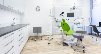 2023年4月11日 / 最終更新日 : 2023年4月11日 tom Clinic interior with modern dental unit, white furniture and grey worktop